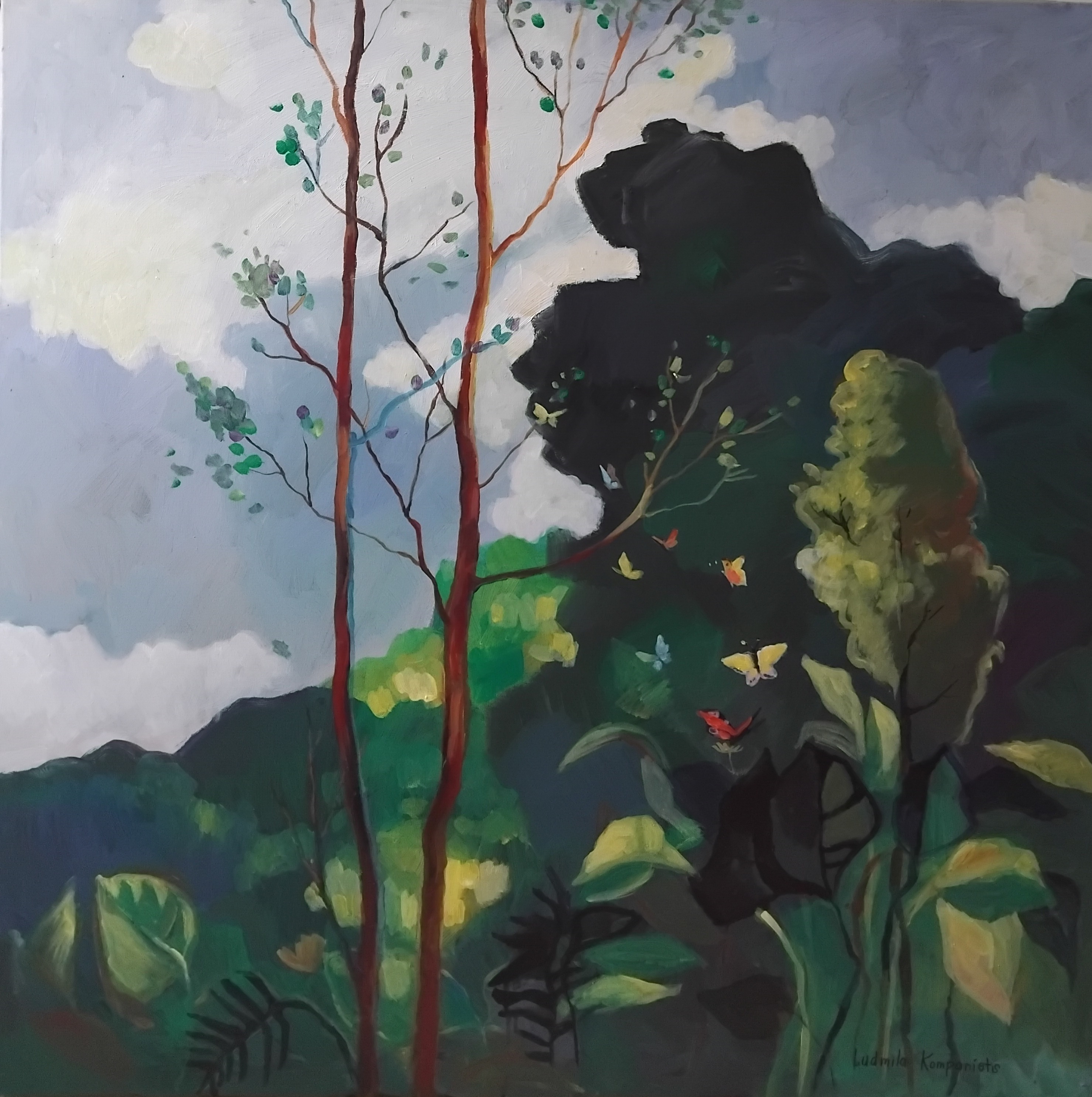 Ludmila Kompaniets vill bjuda in betraktaren till en färgstark och berättande resa genom naturens mångfald genom måleri och skuptur.